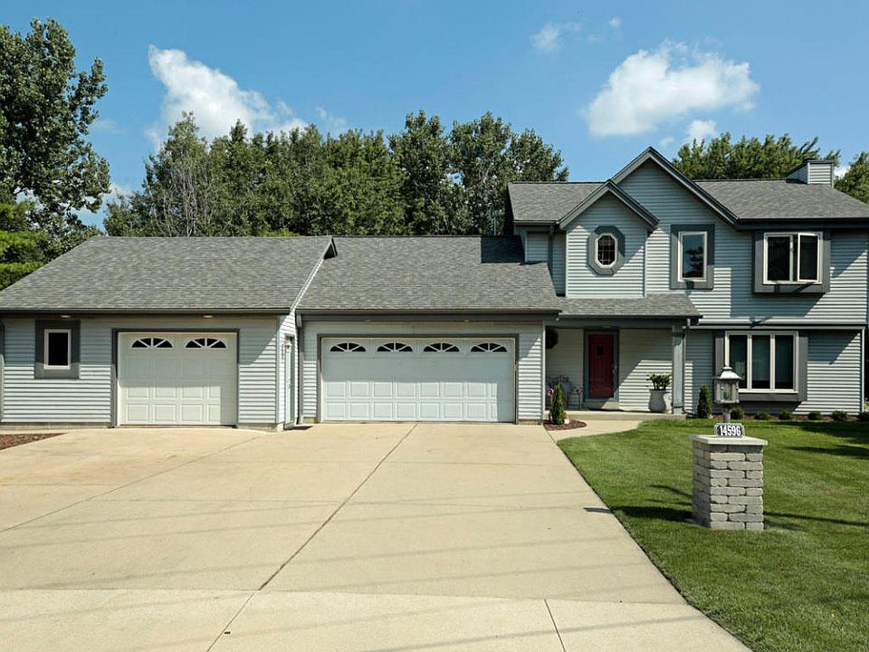 Love to entertain? Then this is THE ONE! Gorgeous, private, resort style setting for this comfortable colonial. Huge great room with striking natural fireplace opens to the expansive, remodeled kitchen with generous cabinet space, center island and hardwood floors. Upgraded appliances were recently installed! Convenient main floor laundry. Large master bedroom with hardwood floors and walk-in closet. Partially finished lower level. The original heated 2 car attached garage opens to the 20x30 drive-through garage addition with stained concrete floor, full bar and additional heater for year-round entertaining. Step outside to one of 3 entertainment areas and the gated pool. A large shed offers additional storage. Front landscaping was just completed. Hurry and be in for end of summer FUN!