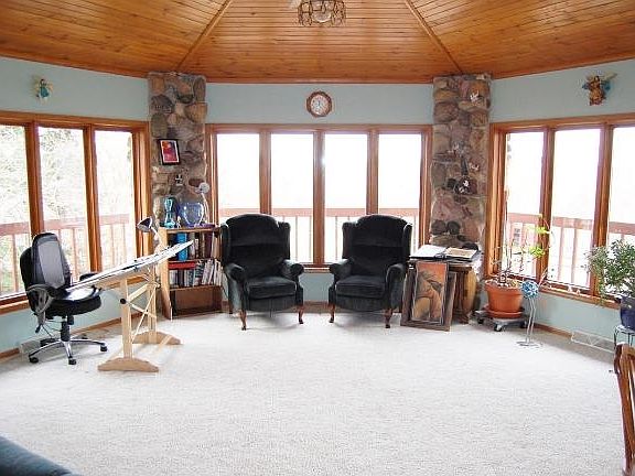 Best 6 acres in the town of Vernon! Check out this private retreat built by a mason for his own dream home overlooking the Vernon Marsh. Unique hexagon shape on the west side offers both a gathering room on the exposed lower level and great room to enjoy the views. Wrap around deck spans from south entrance of great room all the way around to the kitchen side door. Great for grilling out and enjoying spectacular views. Aerated,spring fed pond and barn with water and electric.