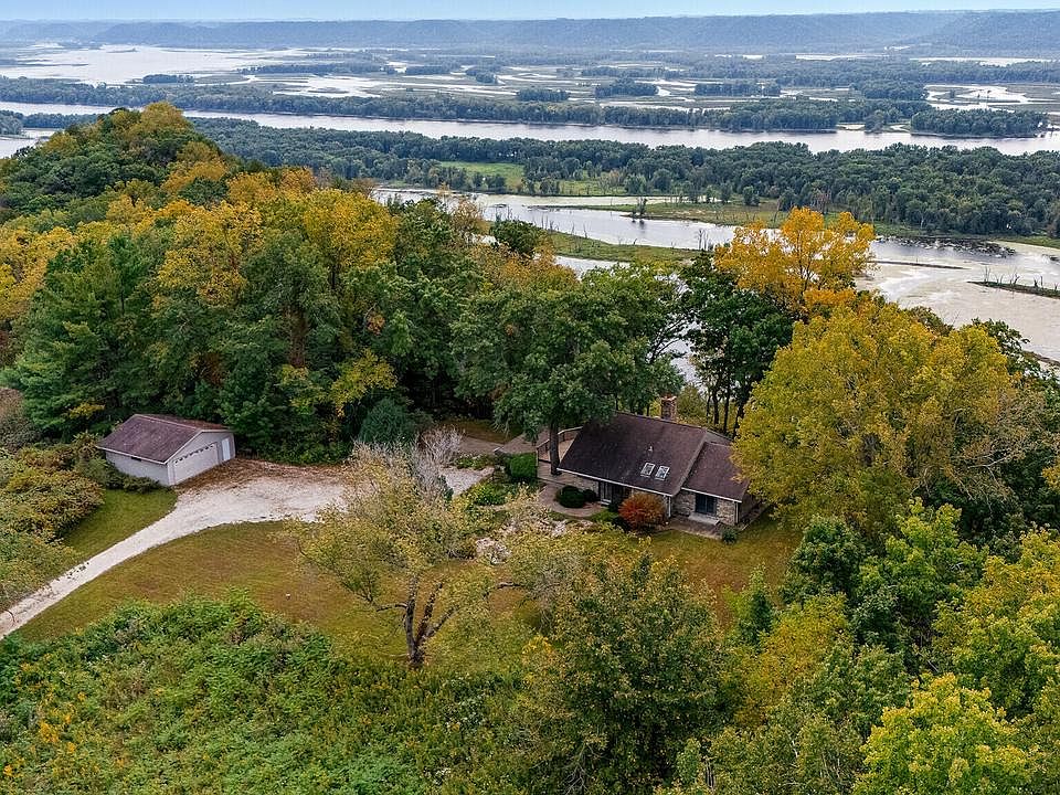 Welcome to your dream retreat. A rare gem offering unrivaled panoramic views of the Mississippi River and the rolling hills of Iowa. Set on 12 usable acres, this private sanctuary combines the timeless charm of mid-century modern design with the tranquility of nature. Step inside to discover a 2-bedroom, 2-bath home where every room exudes warmth, character, and breathtaking views. The layout is thoughtfully designed for both comfort and style, featuring large windows that frame the scenery like artwork. Downstairs, a non-conforming bedroom in the basement offers additional space for guests, a studio, or a quiet office retreat.A rare opportunity to own a bluff top escape where everyday feels like a getaway