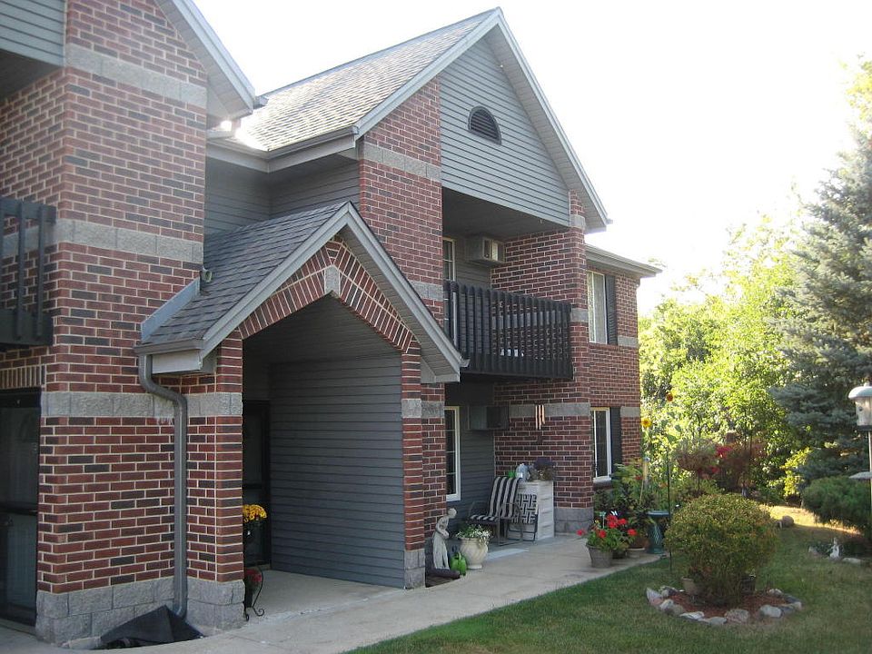 All freshly painted upper condo. New carpeting in bedrooms and living room. Patio doors lead to a balcony over looking a secluded yard. Located at the end of the cul-de-sac. Open concept with in unit laundry. Both bedrooms are nice size with master having separate entrance to bathroom. Includes a 1 car garage and 1 assigned parking spot. Units have their own private entrance. Allows 1 pet under 60 pounds. Includes appliances.