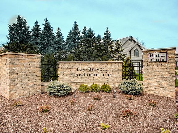 TAKE A 3D MATTERPORT TOUR OF YOUR NEW HOME IN THE ''PHOTOS TAB''!Absolutely splendid impeccable condo offering a wonderful lifestyle at fantastic Bay Breeze on popular Little Muskego Lake with boat slip included! Superb floorplan features breathtaking 2 story great room with grand open staircase! Fabulous cook's kitchen with stunning granite countertops & rich wood flooring flows to spacious open dining & inviting family room w/charming brick fireplace & 2 triple patio doors leading to a large deck with serene views of beautiful greenspace with total privacy! Glorious master ensuite features impressive chapel ceiling, large walk-in closet & private relaxing spa bath! Great lower level den/office w/ huge walk-in closet plus spacious storage area! Main flr utility! Home Warranty!