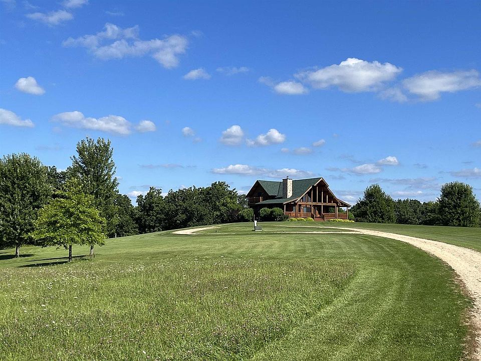 This secluded log home estate perched high in the hills of the Driftless Region offers an escape as a private retreat, for a hunt camp or your permanent residence. Special attention was giving with every detail including the 360-degree viewing from the verandas, wrap around porch and custom window design. The house offers over 2500 square foot of living space including two wood burning fireplaces with decorative veneer and high ceilings in the main living area. There also is an oversized three car garage with amenities. The land is 121 acres of rolling beautiful hillsides diversely broken up by timber, creek and agricultural land. The top ridge is vast and wide covering over 12 acres. Endless recreational opportunities with several Trophy whitetails harvested including a 180+" B/C!