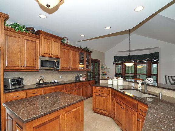 Enjoy the elegance & sophistication of this custom built,split ranch.Home features open floorplan,dramatic ceiling lines,arched doorways & stunning crown molding finishes. Expansive kitchen boasts staggered custom cabinetry w/granite island & oversized breakfast bar. Home capitalizes on picturesque conservancy setting by offering wall of windows in Living Room,Bay Dinette& Four Season Room.Fireplace,tray ceiling,beautiful views & lovely master bath create a serene retreat in Master Suite. Walk-out lower Family Room offers expansive space for entertaining family& friends.Office could be BR #5