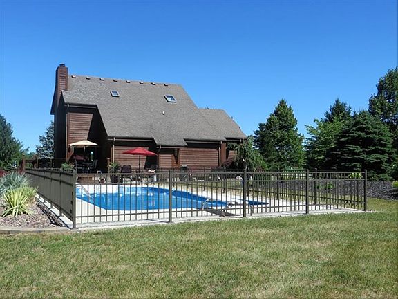 ONE SWEET HOME!! Gorgeous hardwood and ceramic tile throughout 1st floor. This custom home features well designed kitchen with marble counters, ceramic backsplash, huge island/breakfast bar. Scenic views from the sunroom and great room. Stunning brand new master retreat. All new travertine flooring, vanity, shower, jacuzzi tub. All new carpet throughout upstairs. Finished walk-out basement with bedroom #5 and full bath and kitchenette. Well maintained in ground pool with newer lining. 2015: new furnace, water heater, A/C. Home also has whole house vacuum system. Tri County Rural Electric !