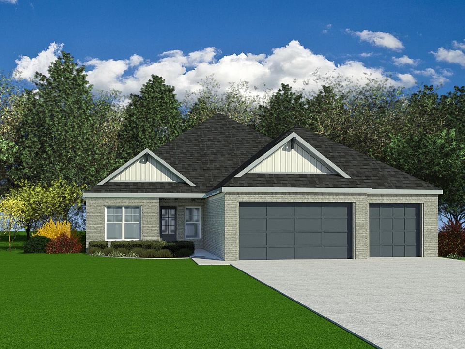 Deluxe features and ample room for the ultimate in comfort, convenience and style, our Aurora plan welcomes you home with an inviting porch entrance, an abundance of grand windows and a spacious three car garage. One of the unique features of this home plan is an elegant entry space and formal dining which leads you into a grand space with an open kitchen and breakfast nook overlooking the spacious living area and cozy corner fireplace. The open concept home plan creates a wonderful gathering area for family and friends. This home design includes a gorgeous kitchen featuring beautiful cabinetry, a large kitchen island and a walk-in pantry. The kitchen opens to a beautiful well-lit breakfast area offering access to the grand covered patio featuring a breathtaking vaulted ceiling, making it a perfect home for outdoor entertaining. Adjacent to the kitchen is the master suite of your dreams. The master bedroom is secluded to one side of the home, leading to a private master suite away from the hustle and bustle of your children or guest rooms. The large master bedroom features high ceilings and a relaxing master bathroom with a dual-sink vanity, a soaking tub, a separate shower, a private toilet area, and a huge walk-in closet. The two bedrooms have their own private hallway and a shared bathroom with beautiful finishes, double sinks, and a full bath. Additional highlights of this home include a superb study right off the entry and both a powder room and a mud room convenient...