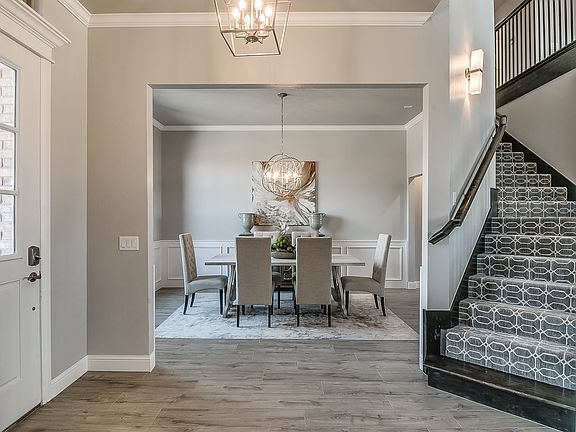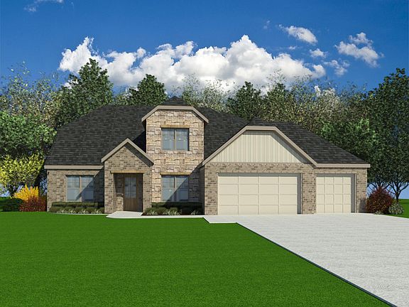 Elegance and luxury design are combined to bring you this Nottingham design. The grand floorplan features a foyer that leads you by an open formal dining area, a stunning study featuring high vaulted ceilings and a gorgeous staircase overlooking the two-story living room with soaring ceilings and a grand fireplace. The living room leads into the impressive kitchen space with a kitchen island, stunning granite countertops, and built-in appliances. The beautiful well-lit breakfast area offers access to outdoor entertaining under the open covered patio. Down its own private hallway separate from the rest of the secondary bedrooms you will find the master suite featuring high ceilings, a corner tub, a walk-in shower, private toilet, and convenient his and hers closets. Just down the hall from the master suite, the laundry provides convenient access while the elegance of the large mud bench provides both practicality and design to the home. Upstairs you will find the two large secondary bedrooms with an adjoining full bath as well as a game room with access to its own full bath ideal for visiting guests and family members. This home plan offers design alternatives to allow a bonus room to the upper floor for added space for a game room, or possibly an extra bedroom for visiting guests. Additional features of the home include the stunning curb appeal and a covered porch area with high vaulted ceilings that will make you the envy of the neighborhood. With more than 3,000+ square ...