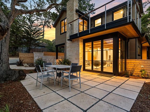 Extraordinary design by Alan Lehman of Lehman Design Studio. New construction! Stunning white water views of Pt. Lobos and Carmel Bay from the living room, main bedroom suite, and upstairs deck. Located on a tranquil lane leading to a picturesque walking bridge for a 7-minute walk into the wonderful village of Carmel-by-the-Sea! The exterior features a blend of stone and wood with stately oak trees welcoming you to the front entry. Three bedrooms and three full baths, fabulous great room, dining, and chef's kitchen. Features include a Zehnder whole house ventilation system, mechanically vented crawlspace, radiant heat, solar power, induction cooktop, and quartzite counters. Hand-troweled plaster walls throughout the house and garage. Fully finished garage with outlets to watch TV while using your treadmill. Warm contemporary Carmel design is thoughtfully built using the latest building science in creating a high-performance home.
