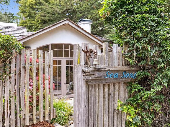Sea Song is a quintessential Carmel-by-the-Sea home. From the moment you approach the home and enter the gate you will feel the propertys enchantment. Built by local acclaimed builder, Doug Mack, the craftsmanship and thoughtfulness in the attention to details are apparent. The soaring ceilings in the living room and primary suite have doors that expand the living space to the private patio filled with flowers. Upstairs are two guest rooms also with a private deck that peers into the redwoods and pines of the adjacent park. Start your morning off with a walk down to the white sands of Carmel beach. Or, take an easy stroll just 5 blocks to downtown to experience the local restaurants and shopping. The 1,917 square foot home works for either a full-time residence or part-time getaway where you can start enjoying your place in Carmel-by-the-Sea.