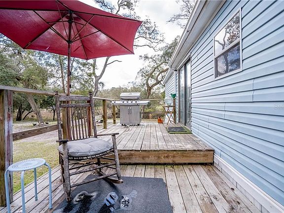 Fine Florida Living On Your Own 5 Acres! Come view this maturely wooded, private homesite complimented with a 1997 Mobile Home and plenty of room to spread out! A newly installed gate welcomes you home to a multi-level wood deck as you enter the home. A spacious kitchen is perfect for cooking large or small meals with a breakfast nook that overlooks the back patio. A large open living room is perfect for that large screen TV. Master bed/bath is located across from the other rooms, features a walk-in closet, and separate tub and shower options. Entertain your guests on a weekend BBQ or host a relaxing night in the spacious yard. Current owner raises dogs and has separate housing for the dogs onsite. Endless possibilities exist. This property has right amount of nature cleared for personal use, while still maintaining the natural surroundings 5 acres offers.