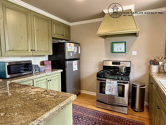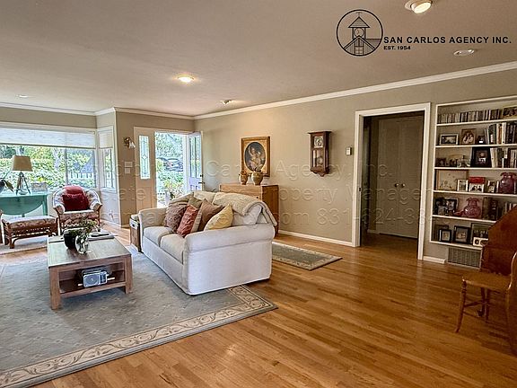 (REGAJ) San Carlos Agency, Inc. offers this well-maintained, 1,257 square foot, two-bedroom, two bathroom home located in north Carmel, on the lower end of the desirable Carmel Woods neighborhood. This unfurnished and updated, single-level home features a large living room, a gas fireplace, hardwood floors, a fenced yard, a private backyard patio, and a detached single-car garage. The kitchen features granite countertops, gas range, refrigerator, dishwasher, double sink, and countertop microwave. The primary bedroom has an en-suite bathroom with a separate tub/shower that it shares with the second/guest bathroom. Tenant pays all standard utilities but Landlord will pay for gardener. Washer/dryer in the hallway and left as a courtesy to tenant. Pet negotiable. No smoking. Contact San Carlos Agency, Inc.