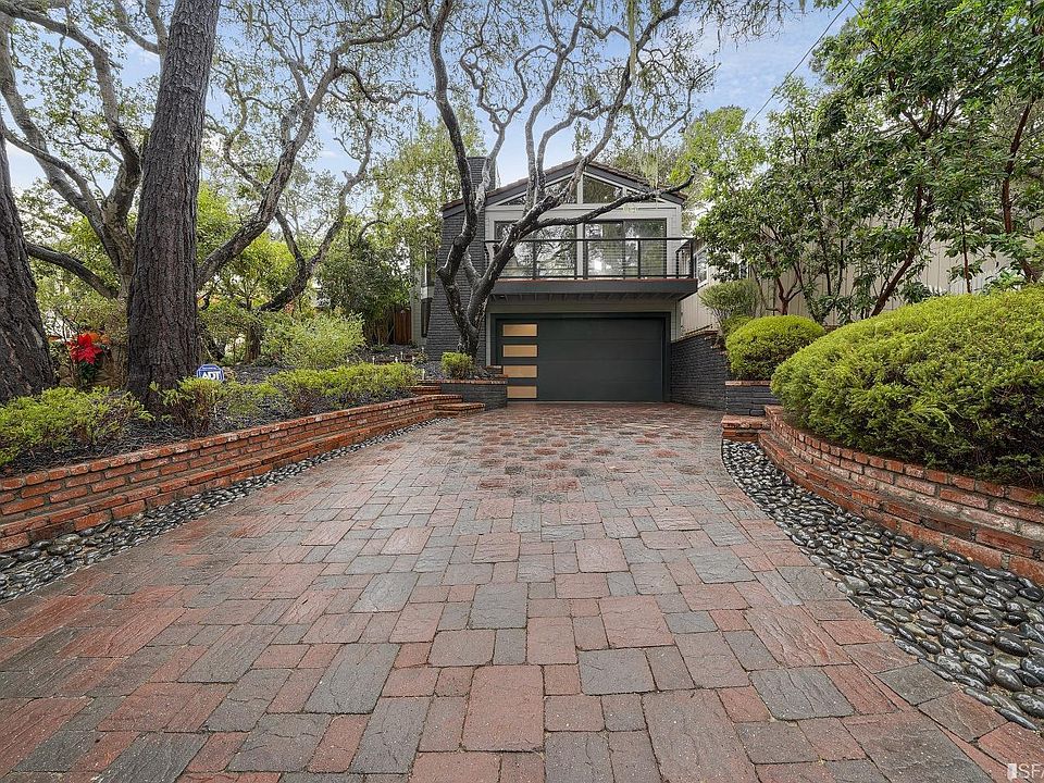 This newly renovated home has 3 bedrooms, 3 bathrooms, and a home office. An open floor plan, Thermador appliances, and an instant water heater bring this home into contemporary convenience and style. Floor-to-ceiling windows bring in the outdoors, and decks enhance the ambiance of this tranquil setting. New bamboo floors and high ceilings add to the warm and inviting atmosphere. The house boasts a bright and airy living room, dining room, and family room, off the gourmet kitchen. Among its features, an enormous island with a cooktop and a custom copper hood. The living and dining rooms are on the main level and overlook a dense coastal-oak canopy; custom-designed fireplace in the living room. The guest bedroom and laundry also on the main level. The curved-railing staircase leads to the upper level with two bedrooms. The primary bedroom with a huge bathroom and walk-in closet. The second bedroom features a beautiful bathroom and large windows. As you approach the house via the driveway, you are struck by the gray brickwork of the property, with its deck above the garage, the high transom windows, and the garage door with its modern glass panels. Beautifully paved backyard patios, a garage equipped with a Tesla EV charger & ample storage complete the amenities of this home.