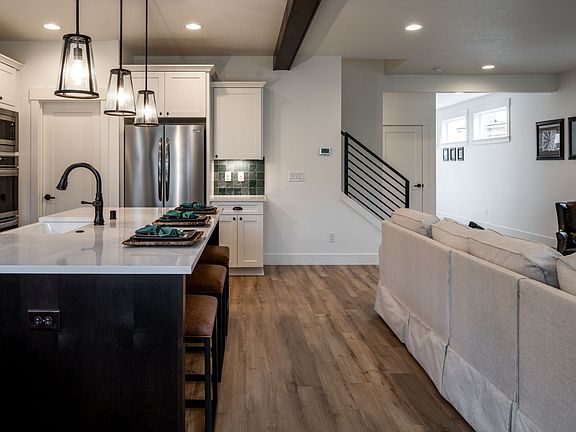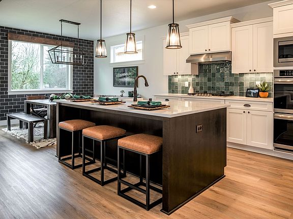 The Wallowa is an ideal home design for families that want space and flexibility. This four-bedroom, 2.5 bathroom, two- to three-car garage home has 2,388 square feet spread over two stories. On the main level, the living area is focused in the back of the home for privacy as well as the sense of space from the open-plan layout. Upstairs, the bedrooms are the focus, but still with plenty of room to play.With multiple exterior elevations, the Wallowa begins offering options that will enable the buyer to transform this house into their idea of home. The covered front porch is great for welcoming decorations or even a spot to sit and enjoy a view of the neighborhood. Transom and side windows, as well as a window in the entry ensure plenty of natural light to welcome you home during the day, yet the entry also provides enough space for a warm, cozy lamp for those darker evenings.