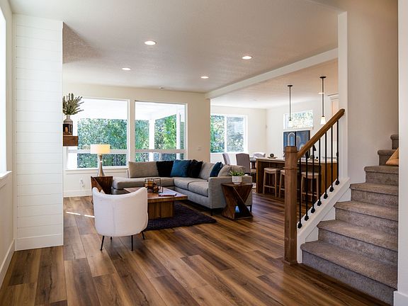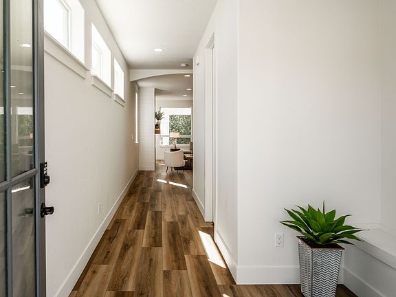 The Wallowa is an ideal home design for families that want space and flexibility. This four-bedroom, 2.5 bathroom, two- to three-car garage home has 2,388 square feet spread over two stories. On the main level, the living area is focused in the back of the home for privacy as well as the sense of space from the open-plan layout. Upstairs, the bedrooms are the focus, but still with plenty of room to play.With multiple exterior elevations, the Wallowa begins offering options that will enable the buyer to transform this house into their idea of home. The covered front porch is great for welcoming decorations or even a spot to sit and enjoy a view of the neighborhood. Transom and side windows, as well as a window in the entry ensure plenty of natural light to welcome you home during the day, yet the entry also provides enough space for a warm, cozy lamp for those darker evenings.