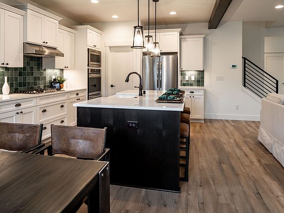 The Wallowa is an ideal home design for families that want space and flexibility. This four-bedroom, 2.5 bathroom, two- to three-car garage home has 2,388 square feet spread over two stories. On the main level, the living area is focused in the back of the home for privacy as well as the sense of space from the open-plan layout. Upstairs, the bedrooms are the focus, but still with plenty of room to play.With multiple exterior elevations, the Wallowa begins offering options that will enable the buyer to transform this house into their idea of home. The covered front porch is great for welcoming decorations or even a spot to sit and enjoy a view of the neighborhood. Transom and side windows, as well as a window in the entry ensure plenty of natural light to welcome you home during the day, yet the entry also provides enough space for a warm, cozy lamp for those darker evenings.