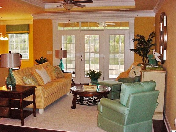 Come see this wonderful all brick home located at Sago Plantation with water views, screen porch, gutters, natural gas range and natural gas hot water tank,presidential mill work package, extensive crown thru out, as well inside the tray ceiling, fluted door casement,higher baseboard, judges panel wainscoting in the dining room area. Granite in kitchen and master bathroom vanity.Hand scraped hickory wood floors in dining and living room, ceramic tile in kitchen, breakfast nook, and wet area's. Upgrade cabinets and stainless steel appliances. Lot 100 sago palm Dr is presently cleared and grader and the house to be built will have the same design and upgrades as the model located at lot 141 Babylon Dr at Sago.We can also built this plan on a lot of your choice. This Builder has several large wooded or water view lots to select from within Sago Plantation and Legends. Golf Memberships privileges to the Legends 5 Golf Courses.