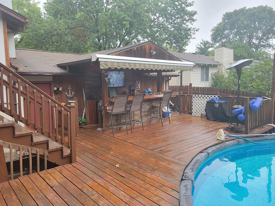 Shopping with walking distance. Quite neighborhood, close to Page extension. House is on a no through traffic. 24ft. Above ground pool, surrounded by deck. Outside bar under roof. TV hookups, wet bar in lower level with wood burning fire place. TV hookup over fire place. Refrigerator, gas range and microwave. Washer and dryer. Pet condo built into garage. I need rental history, number in family, pets, why are you moving, annual income job history