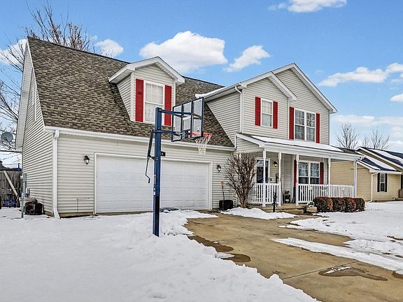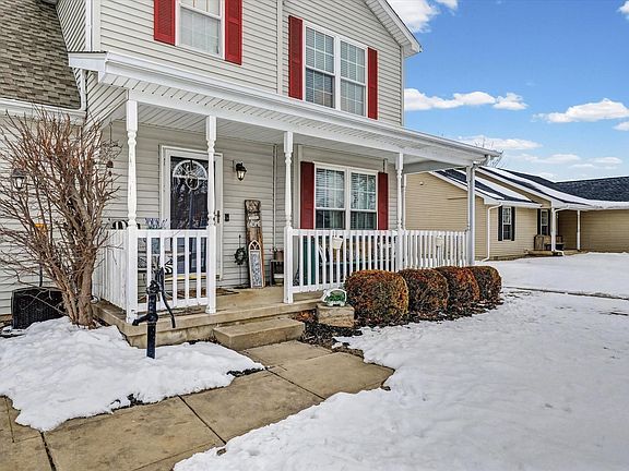 Spacious two-story home offering 4 bedrooms and 2.5 baths with approximately 1,809 square feet of comfortable living space. The inviting curb appeal features a covered front porch perfect for relaxing evenings and welcoming guests. Inside, the home offers a functional layout with generous living and dining areas that provide flexibility for everyday living or entertaining. The kitchen sits conveniently at the heart of the home with ample cabinetry and workspace, while the adjoining spaces allow for easy gathering. Upstairs, you will find four well-sized bedrooms, including a primary suite with a private full bath. The crawl space offers additional storage options, and the attached two car garage adds everyday convenience. Located in the highly sought-after St. Joseph school district and close to parks, schools, and local amenities, this property presents a great opportunity to settle into a growing community while adding your own personal touches.