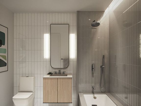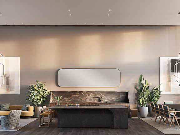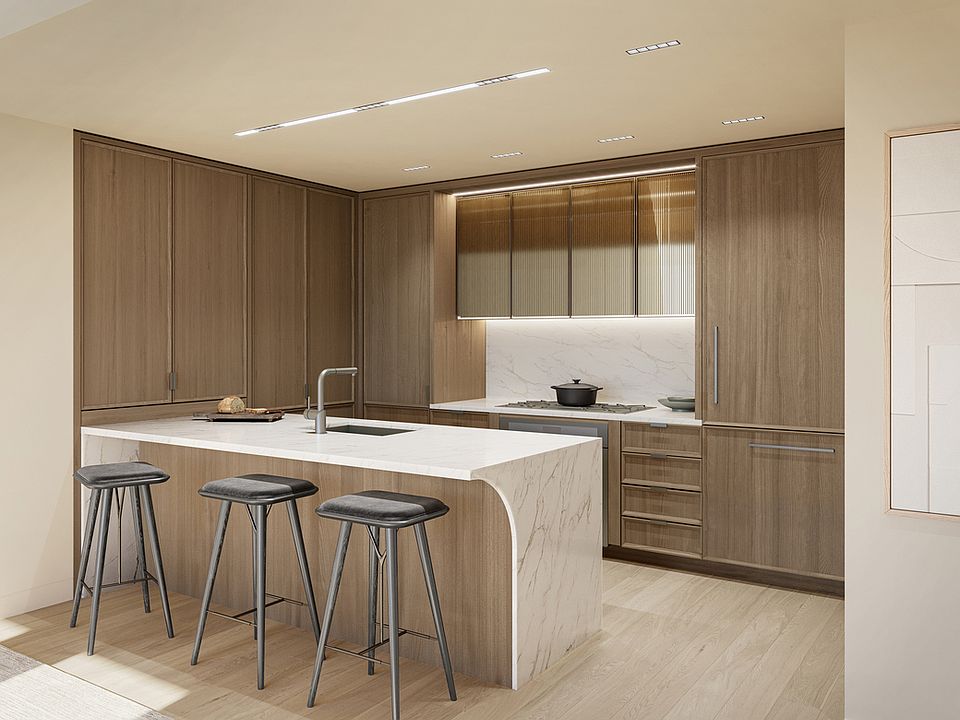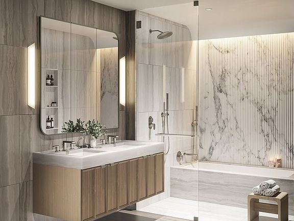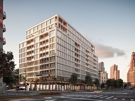 Now offering private in-person tours of our spectacular 6,000 SQ FT Sales Gallery, Garden and Model Residence. Please contact our sales team to schedule an appointment. Introducing Residence 612, a 1016 square foot 2 bedroom, 2 bathroom home with western exposures, and 9' ceilings. The residence features a 132 square foot private balcony accessed from both the living room and master bedroom, with water and electric outlets. Designed by INC Architecture & Design, each residence at Saint Marks Place features carefully detailed finishes and fixtures. 7" White Oak floors with sound cancelling insulation, solid core interior doors, and double glazed windows provide a quiet and serene environment. Thoughtful touches include inde-pendent thermostatic controls for each room provided by a split-system HVAC, pre-wired built-in shade pockets and junction boxes in the living, dining, and bedrooms. Highly customized kitchens featuring custom made white oak and fluted champagne glass cabinets along with a large integrated pantry, the galley kitchen provides plenty of storage. The Thermador Masterpiece Series appliance suite includes a 30" five-burner gas cooktop 30" oven with integrated wifi capacity that can be controlled through a smart phone app, 30" fridge/freezer, 24" dishwasher, and a built-in 24" microwave drawer. Luca de Luna quartzite countertops and backslash, pewter hard-ware and LED under-cabinet lighting complete this gracious kitchen. An elegant combination of rich gray stone, warm white oak, brushed pewter, and pleated marble are seamlessly brought together throughout the primary bathrooms. Cove lighting washes the interior walls in flattering, radiant light, highlighting INC's characteristic geometric design language throughout. Soft, neutral tones are carried throughout highly unique finishes and materials in the secondary bath-rooms. Contrasting wall tiles feature subtle crackle finishes that give the rigid geometric patterns a human touch. Pleating reappears in white oak on the custom floating vanity while picket diamond shapes, rounded corners, and hard lines are carefully placed in the space. Located in the quintessential brownstone neighborhood of Boerum Hill, Saint Marks Place introduces 100 highly crafted condominium residences ranging from Studios to Four bedrooms, 80% of which fea-ture private outdoor space. With a comprehensive design vision for exteriors and interiors by INC Ar-chitecture & Design, a series of lush landscaped gardens by Terrain, and a 360º holistic wellness and fitness environment curated by The Wright Fit. The architecture of Saint Marks Place is inspired by the brownstones and townhouses that surround it. Through geometric abstraction and modern reinterpretation with over 8,000 sculpted terra cotta pan-els, the façade is a testament to building's dedication to craft and quality. Saint Marks Place is a full-service building with full-time attended lobby, live-in Resident Manager and providing 19,000 Sq Ft of indoor and outdoor amenities situated over four light-filled levels that focus on health, wellness, and community. Onsite parking and private storage are available separately for purchase. Situated at the crossroads of five classic Brooklyn neighborhoods--Boerum Hill, Park Slope, Gowanus, Fort Greene, and Prospect Heights--Saint Marks Place provides direct access to some of the city's most renown cultural institutions, parks, entertainment venues, shopping corridors, transportation and more.