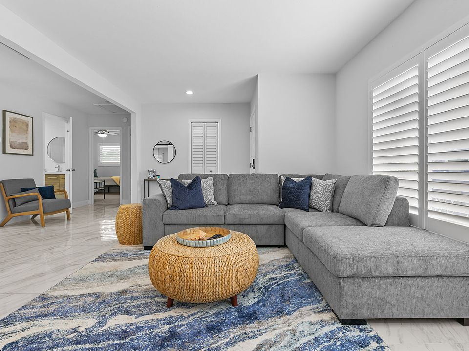 Welcome to Sunset Paradise, a freshly revamped modern home featuring an open layout, a sizable pool, hot tub, a custom built stone outdoor pizza oven, fire pit, and a spacious concrete pad perfect for parking large RVs or Boat Trailers. Best part? Youre just down the street from the stunning white sandy beaches of Treasure Island. Enjoy all the good vibes at your ideal spot for a stress-free stay.