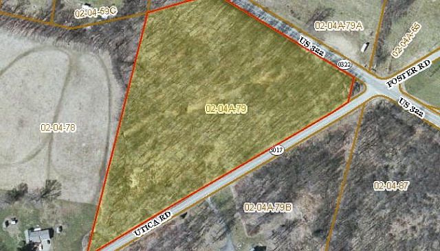 Nice corner 8.83 acre lot, bordered by both St Rt 322 and Utica Rd. Partially timbered. Has great potential to be the property you have been dreaming of.