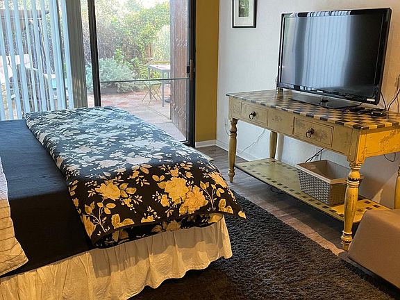 Private gated furnished guest cottage nestled amongst oak tress & landscaped grounds. 2 story open floor plan. Tucked away in the Monterey Sunbelt area above the fog line between Monterey and Salinas. Vaulted ceilings, wonderful furnishings, Main floor has 1 king bedroom, 1 bath, kitchenette. Upstairs floor has loft with office area, a seating area with pull out sofa, TV. Lease duration from 1 month up to 1 year. Maximum occupants two. Available parking for 1 vehicle.