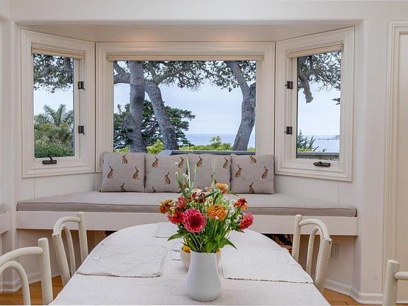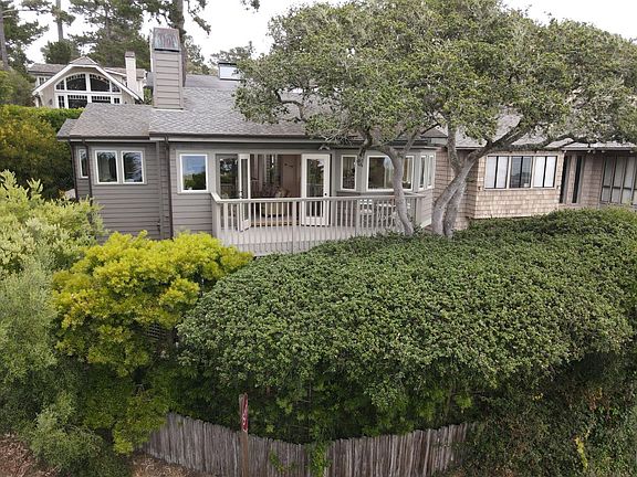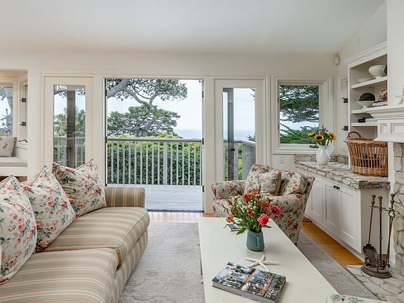 Carmel-by-the-Sea's best kept secret. Perched high on coveted San Antonino Avenue and named for the sounds of the crashing waves, "Symphony in Sea" has expansive, rare white water views. Located near Carmel's Pebble Beach gate. The entrance to the house is through a quiet back street, away from the hustle. The charming garden invites you to sit amongst the flowers and peek at the golfers on the 10th Green of the Pebble Beach Golf Course. Just steps from Carmel Beach and close to town, "Symphony in Sea" has the best of both worlds: privacy and accessibility. When you enter the cozy light filled home with a Carmel Stone fireplace, the large ocean views from Point Lobos to Stillwater Cove are jaw dropping. A well equipped kitchen with all the amenities and a 2 car garage (rare in Carmel).