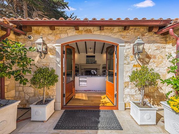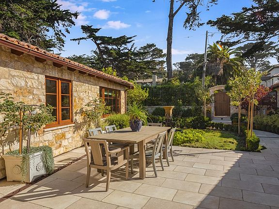 Masterfully, extensively, and exquisitely rebuilt home and ADU in 2017 in the Golden Rectangle of Carmel. 2 minute walk to the ocean and walking distance to downtown. Enjoy endless sunsets and the sound of the ocean in the private, peaceful, beautifully landscaped and gated property. Family and friends can gather for al fresco dining in the courtyard, sunsets on the back terrace or a cozy evening by the firepit. This exceptional French Mediterranean stone home features a European clay tile roof, mahogany windows, solid core oak doors, copper gutters, beamed ceilings, venetian plaster walls, authentic imported reclaimed Provence floor tiles, imported French oak floors, marble baths, bronze railings, solid walnut cabinetry, top of the line appliances, radiant heat, temperature control wine cellar, EV charger, Tesla Powerwall/power backup and a fully integrated security and Sonos sound system.