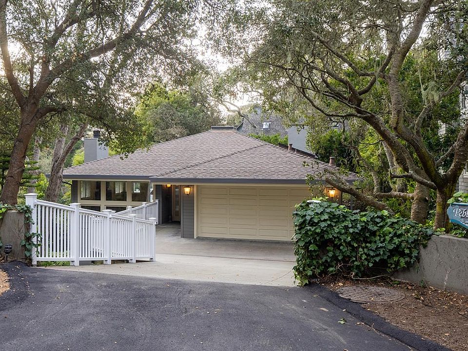 Welcome to Pebble Creek, so named for the special surroundings and a setting that captures great light and foliage surrounding the house and the nearby seasonal creek that adds to the ambience. Ideally located at the end of a cul-de-sac and just a short walk to downtown Carmel with easy access to all the shopping, great restaurants, art galleries as well as spectacular Carmel Beach. This unique spacious home featuring 4 bedrooms, 3 & 1/2 baths, plus a large Bonus Room was tastefully renovated and is perfect for hosting family & friends in downtown Carmel! The kitchen features stainless steel appliances, a gas cooktop, and paneled refrigerator and dishwasher. The two-car garage also has a Tesla Charger. Square Footage (2,575 sq.ft.) does not include the Bonus Room of 406 sq.ft.