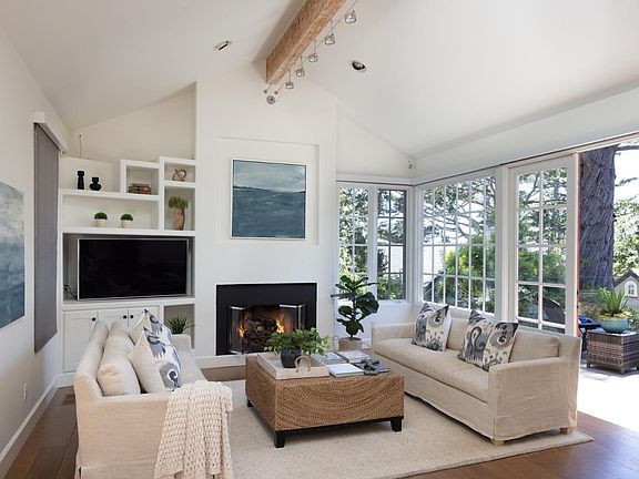 This custom Doug Mack home was built in the very timeless Carmel Cottage tradition. It offers a great floor plan and wonderful long views of the ocean, sky, hills, and canopy from almost every window. Three bedrooms, two and one-half baths, high beamed ceilings, private decks, European white oak floors, French doors, custom overhead lighting, electric window shades, fully fenced lot, EV Charger and move in ready. Located in a very quiet and private setting you will also enjoy a short 3 block walk to town and restaurants, and an 8 block walk to the white sands of Carmel Beach. Welcome to Chez Soleil.