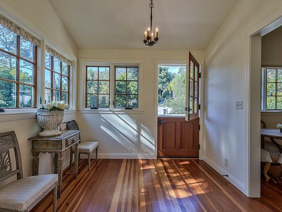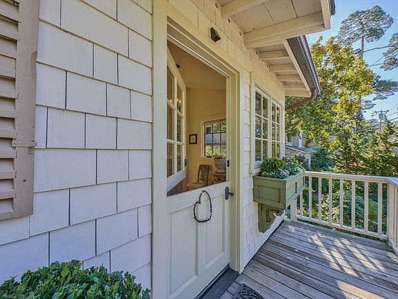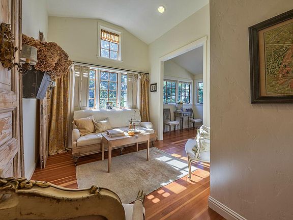 A darling home with all the whimsey & charm you'd expect in a Carmel cottage. Located on a quiet cul de sac close to downtown and the Bay. Cottage is delightfully unique and has been lived in and loved by people who cherish its specialness. Front door opens to entry hall and sitting room that can be enclosed to make a bedroom. Primary bedroom on main floor with bathroom and closets. A cook's kitchen, beautifully furnished with a Bertazonni stove, and spacious shelving. There's space for dining and /or watching TV /reading. Upstairs loft space is light-filled with lots of windows, bathroom and spacious closet that makes it a cozy retreat. Another room is on ground level that's perfect for sharing wine, watching TV or playing games. Garage is length of house with adjacent laundry room with sink, and bonus area with plenty of storage-and an extra toilet! Feel the magic in the backyard garden sanctuary with terraced spaces for dining, tending to the plants and flowers or just relaxing.