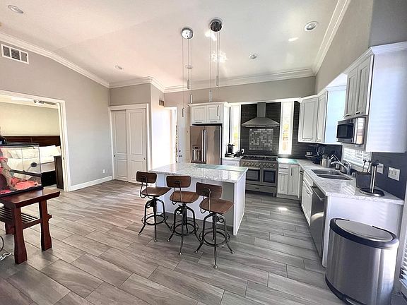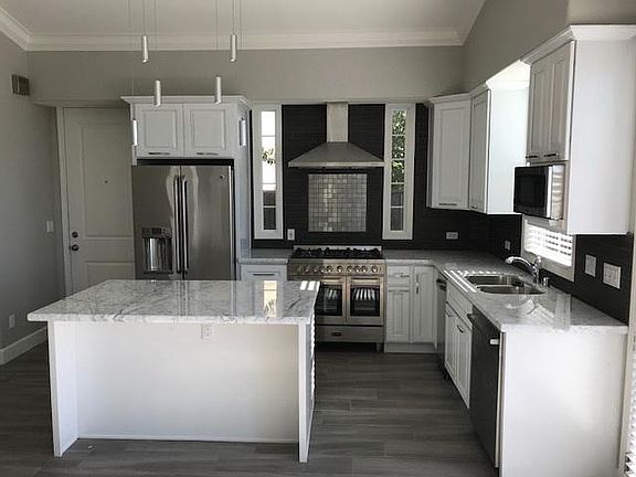 Private entrance, high ceilings, 70" TV, custom bedroom closet, center island, modern kitchen with stainless appliances including dishwasher, gas range & oven, microwave, disposal, side by side door refrigerator with ice maker. Upscale bathroom with rain shower. Patio awning with remote for shade, if needed and outdoor furniture. Apartment and main house power backed-up by Tesla batteries. Apartment comes unfurnished aside from bar stools, patio furniture and TV. It can be furnished for an additional monthly amount and a minimum one year lease.