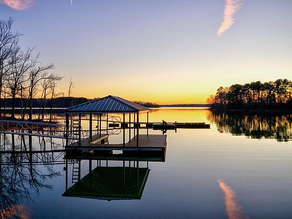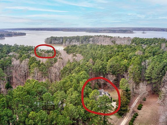 KERR LAKE HOME with NO Subdivision.The 3 Bedroom/2.5 Bath contemporary offers an open floor plan . Vaulted Great Room has a Fireplace perfect for cool evenings . It opens to the Dining area & Breakfast Nook. Pull up a stool to chat with the Chef: Granite Counter,Double Ovens & recent Jenn Air & Stainless Refrigerator. Enjoy plenty of natural light with mostly glass on the lake side.Dine on the lakeside Deck. The Primary Bedroom is on the main level w/Walk In Closets & step in Shower (Rain Shower + Handheld).Birng your Bath Bombs- the Spa Tub is ready for soaking!Great entertaining space with a Bonus Room above the Garage . Golf Cart to your Aluma Dock in excellent water & the added plus of enjoying SUNSETS over Kerr Lake! Extra Large 2 Car Garage w/Storage Cabinets. Covered Porch area to greet your guests.Cement Drive & Pet friendly fencing too.Love the inlay detail on the Foyer foor.