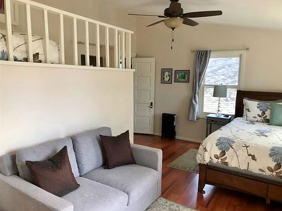 Our charming, fully furnished studio is thoughtfully designed to ensure your utmost comfort during your vacation stay. This inviting space features a plush queen bed and a twin bed in the loft, perfect for a peaceful night's rest. You'll also find a convenient small closet and a well-appointed bathroom to meet your needs.