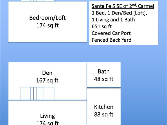 Cute, Carmel Cottage (1 bedroom, 1 bath + loft) suitable for one or two people near (3 blocks) to downtown Ocean Avenue. Nice backyard (fenced) and covered parking. The adjacent home to the North is under construction. We will be hosting an open house on Saturday, July 19th from 1-4 pm. Please use the GPS coordinates below to locate more easily. NOTE: Correct location (GPS) and address: GPS Coordinates: 36 33 35.9 N 121 55'04.7"W Address: Santa Fe 5 SE of 2nd (5th house South of 2nd Street on the East Side of Santa Fe, between 2nd and 3rd) Tenant pays all utilities (except sewer).