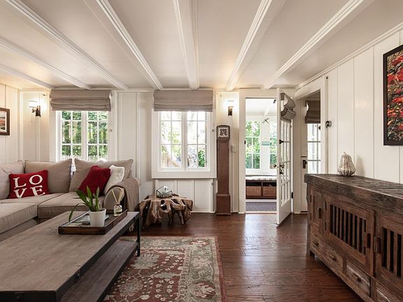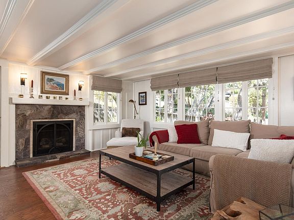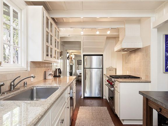 Escape to Pear Tree Cottage! Just two blocks from town yet a world away, this enchanting cottage was built in 1934 and re-imagined and expanded by Hugh Comstock in 1940. The current owners, intent on preserving the original charm and character, skillfully and seamlessly blended old and new with the addition of a ground-floor master bedroom suite, updated bathrooms, an attached rebuilt oversized one-car garage, and 1100+ bottle wine cellar. The light-filled master bedroom has vaulted ceilings, a gas fireplace, and ample closet space. Other features include a separate dining area, separate entry porch, and wisteria-adorned patio with wood-burning fireplace.This is a truly special property. Come visit - you'll never want to leave!