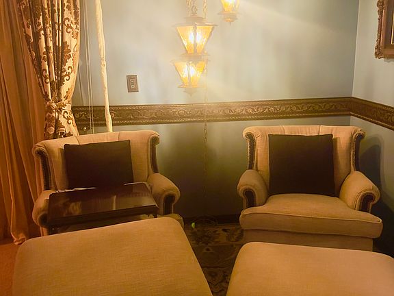 - Attached pvt patio from front bedroom w/ sunbrella love seat, bar w/ 2 stools & Glantz fridge/freezer
