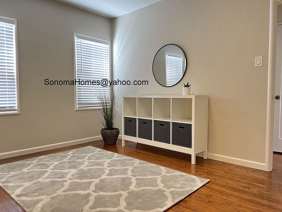 Cute Mediterranean style house in the Burbank Gardens neighborhood of Santa Rosa. This newly painted 1 bedroom, 1 bath house has a nice floor plan with a living room, kitchen, dining room, bathroom and bedroom. The kitchen has quartz counter tops, white subway tiles, lots of cabinet space, a pantry, a new gas stove, new refrigerator and new washer/dryer