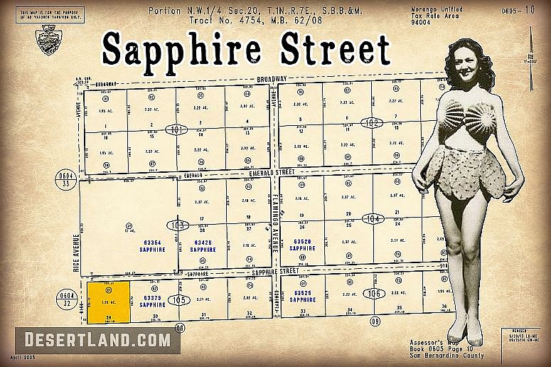 1.95-acre land parcel for sale on the corner Sapphire Street and Rice Road in Joshua Tree, CA. Water and electricity are available to tap into along the street. This residential area is close to town and Joshua Tree National Park, but still private and nicely off the beaten path. --------------------------------------------------------------------------------------------------------------------------------- To purchase this property on terms from DesertLand, we require a Down Payment of $3500 and a Flat Rate Escrow Fee of $492. So your total start-up cost for the property on Sapphire Street is $3992. You can then choose a loan that best fits your budget: 5-year loan ($288 a month), 10-year loan ($174 a month), or a 15-year loan ($138 a month). We conduct a traditional escrow with title insurance. We do not require a credit check. Do not have the down payment? Look into our Down Payment Program. On that program, it is only $383 to start owning this land on Sapphire Street today.