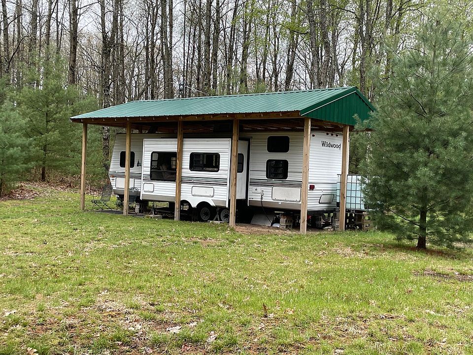 Great recreational base camp for this 3.59 acre nicely wooded set-up! Secluded and close to the trails. Camper is updated, very clean and ready to enjoy. Camper has a great roof over system in place, batteries run the camper, holding tank for water supplies the bathroom. Located on county maintained road for year round access close to the trails and nicely secluded. great hunting/camping area, close to area rivers, lakes and Federal Land close by!
