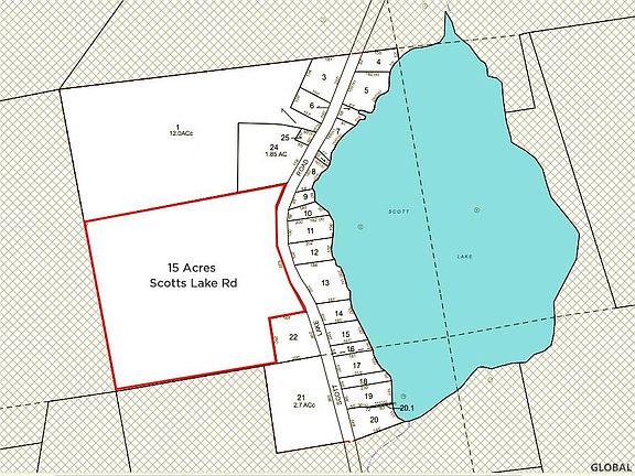 15 acre parcel for sale across the road from Scott's Lake in Salem NY. 620ft of road frontage. Build your dream home and or cottage. The parcel offers views of Scotts Lake while enjoying privacy. Scotts Lake has 16 cottages on the lake and is known for its excellent fishing. The property sits on a slope and has great views of the lake. Tree clearing would need to be done for optimal views.