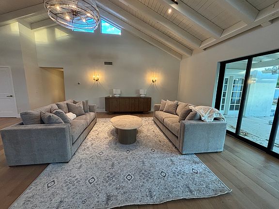 Inside, the home has been thoughtfully updated throughout, featuring a brand-new kitchen equipped with quartz countertops, high end appliances, custom cabinetry, and elegant designer lighting. The open floor plan allows for seamless flow between the kitchen, dining, and living areas, all enhanced by abundant natural light and a clean, contemporary aesthetic.