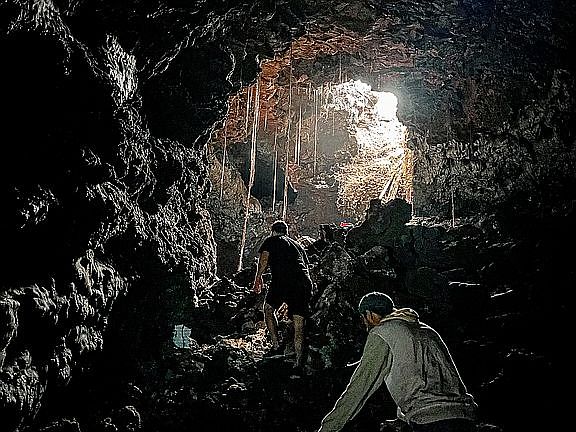 Distant ocean viewsCinder drivewayVast underground worldNatural lava shelvesRefreshing breezePrivate lava tube systemNative ohia trees
