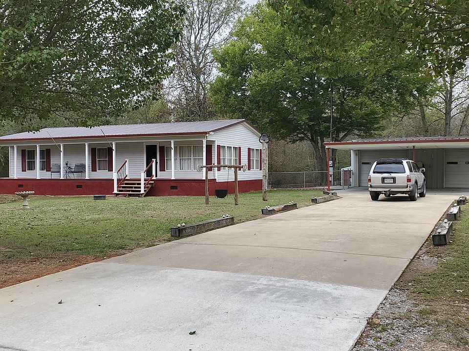Partially furnished home (includes appliances), open concept living area, large 30 x 24 ft covered back porch, 20 x 30 ft extra storage building, large fenced in back yard, heated and cooled 2 car garage with 2 car carport with running water. All metal roofs. Property includes city water and sewer access, 2 road frontage, very nice quiet neighborhood. Property includes lot off of 2nd road frontage. Of note: current tax assessment is under edit due to combining properties.