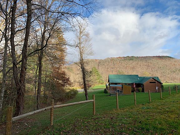 Serenity Farm. Beauty day or night at Serenity Farm. 2 bedroom, 2 bath cedar sided house is immaculate with recent updates; 9.58 acres carefully groomed and perfect for a mini-farm. The house features hardwood floors, ceramic tile showers, cathedral ceilings, custom cabinets, Pella/ Anderson windows and doors, custom fitted shades, large covered deck, private back porch, stacked stone exterior foundation and recent exterior staining. Acreage includes a newly fenced pasture, woodland, fresh spring, garden area, and riding corral. In 2018, owner added new buildings: 2 car detached garage; 10'X20' high ceiling barn with moisture lock floors; a 10X20 ''She Shed''; and a chicken coop. Property located minutes to the Greenbrier River, 35 minutes to Lewisburg, 20 minutes to Marlinton.