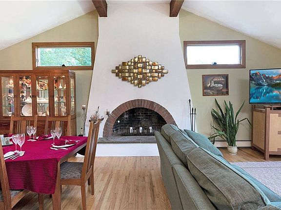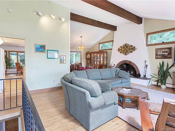 Nestled amongst mature trees is this beautiful Hi-Ranch offering a life of leisure for the lucky new owners. There are two grassy acres, as well as amazing views that will leave you in awe. Step inside to an open-concept layout with a light-filled living and dining room under a high pitched ceiling. Wood floors flow underfoot, with lots of windows and an oversized fireplace that ensures a warm and inviting feel on even the coldest nights. For the home chef, a large kitchen with ample storage and counter space, and views over the casual dining area to a serene outlook. The laundry room is conveniently located in the kitchen pantry. From here, you can step out to the rear deck that overlooks the woods or you can entertain while watching the sunset on the front wrap-around Trex deck. Whether you dine alfresco or start your day with a coffee in hand, this is sure to be a favorite place to relax. Downstairs, is a private screening room to watch your favorite shows, with an adjacent bath and access into the garages. The bedrooms are located on the main level, including the primary suite with an ensuite and two oversized walk-in closets. This must-see hidden gem is in close proximity to many amenities; only minutes to I684 and I84, offers an easy commute to White Plains, points east, and NYC trains.