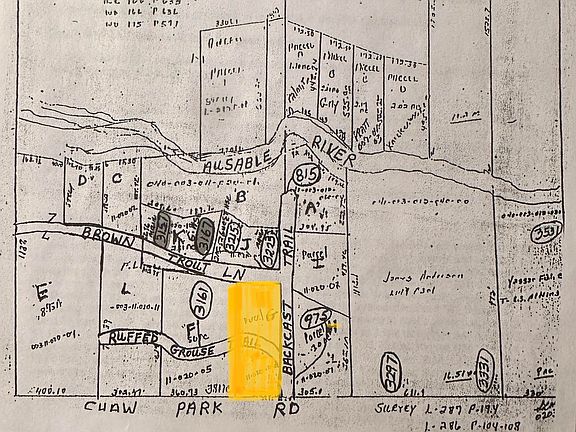 A rare opportunity to own a special piece of Northern Michigan. Three mature wooded acres perched in the original Bromley Whippoorwill Fishing compound await the home or cabin of your dreams. A cleared homesite atop the hill on Ruffled Grouse Trail is ready for your cabin. Currently no well or septic. Electric Adjacent. The property includes a 1/12 ownership interest in a 5.2 acre nature preserve with shared private access to 717' of the legendary Main Branch of the AuSable River. A private trout pond, walking trails and an AuSable Riverboat house complete the property. Access to hundreds of miles of trails for the outdoors enthusiast. The peaceful sounds of the ''Holy Water'' awaits your arrival!