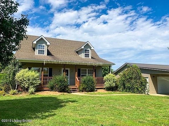 You will adore this charming cape-cod home located just 4.7 miles from the Grayson County courthouse square. Conveniently located to Leitchfields amenities but also far enough out to provide a country cozy feel. This home boasts a total of 2,500 sqft of living space. Interior features to include: 2 bedrooms with additional room in the basement that can be used for 3rd bedroom, 3 bath, Large kitchen with ample cabinet space, Stainless Steel kitchen appliances, laminate flooring, gas fireplace, vaulted ceilings in living room, walkout basement, & loft area. Outside you will find a 30X24 and 24X24 detached garages with electric and concrete floors, 1 car attached garage, large covered deck, 6.86+/- acres, stocked pond, above ground pool and an abundance of landscaping. This is a must see!