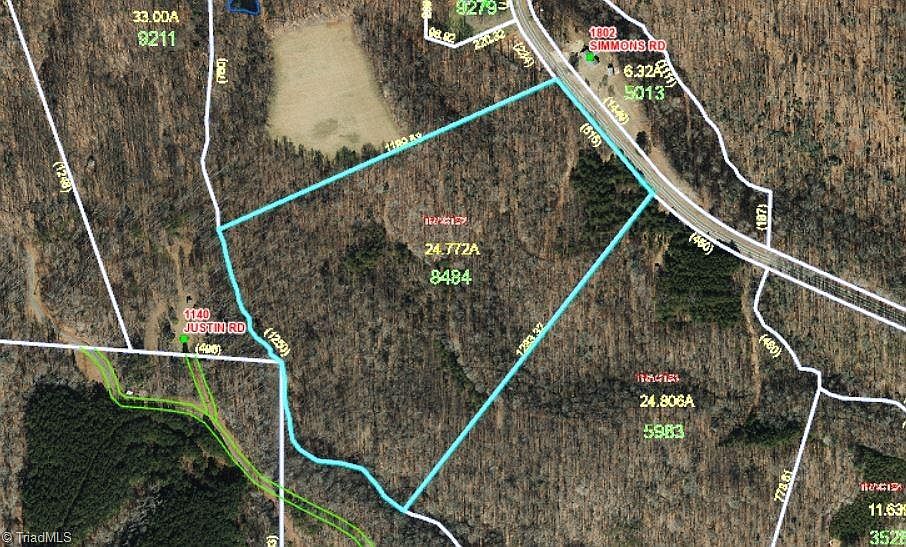Beautiful 24.77 acre wooded unrestricted land parcel in Stokes County. Potential build sites exist all across this rolling property both near the road and by the creek. Views of Hanging Rock Mountain from the road. Ready for your dream home or small farm.