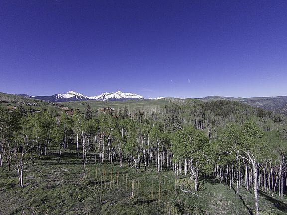A unique knoll lot on Singletree Ridge that slopes to the south and west, providing spectacular views of Wilson Peak, Sunshine Mountain, Down Valley sunsets, plus Iron Mountain and Campbell Peak. An excellent mix of aspen and stately fir provide an ideal combination of a serene setting in the trees while enjoying majestic views.