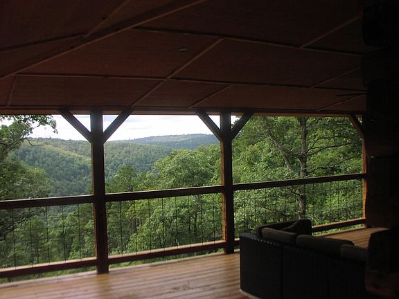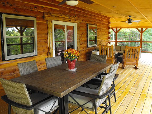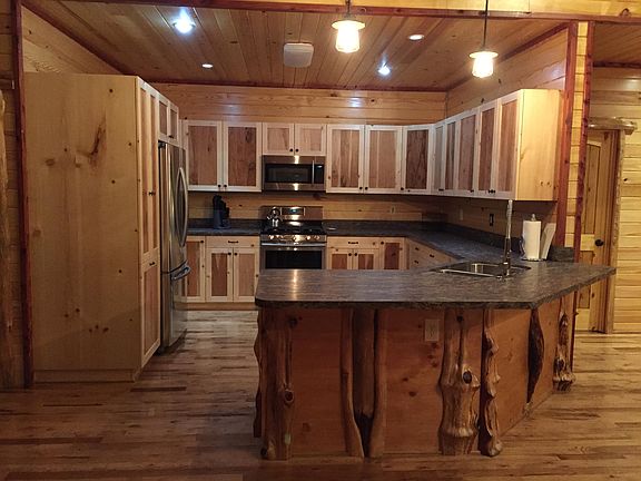 Big, beautiful, well build, almost brand new log cabin on over 6 private acres. Easy access off of a county road. Big view off the large covered decks looking into the National Forest lands. 4 or 5 bedrooms with 3 full baths. Beautiful kitchen. Full finished walkout basement. Rural water and electric and propane. All high dollar appliances will convey. Furniture is negotiable. Seasonal spring and a waterfall feature.
